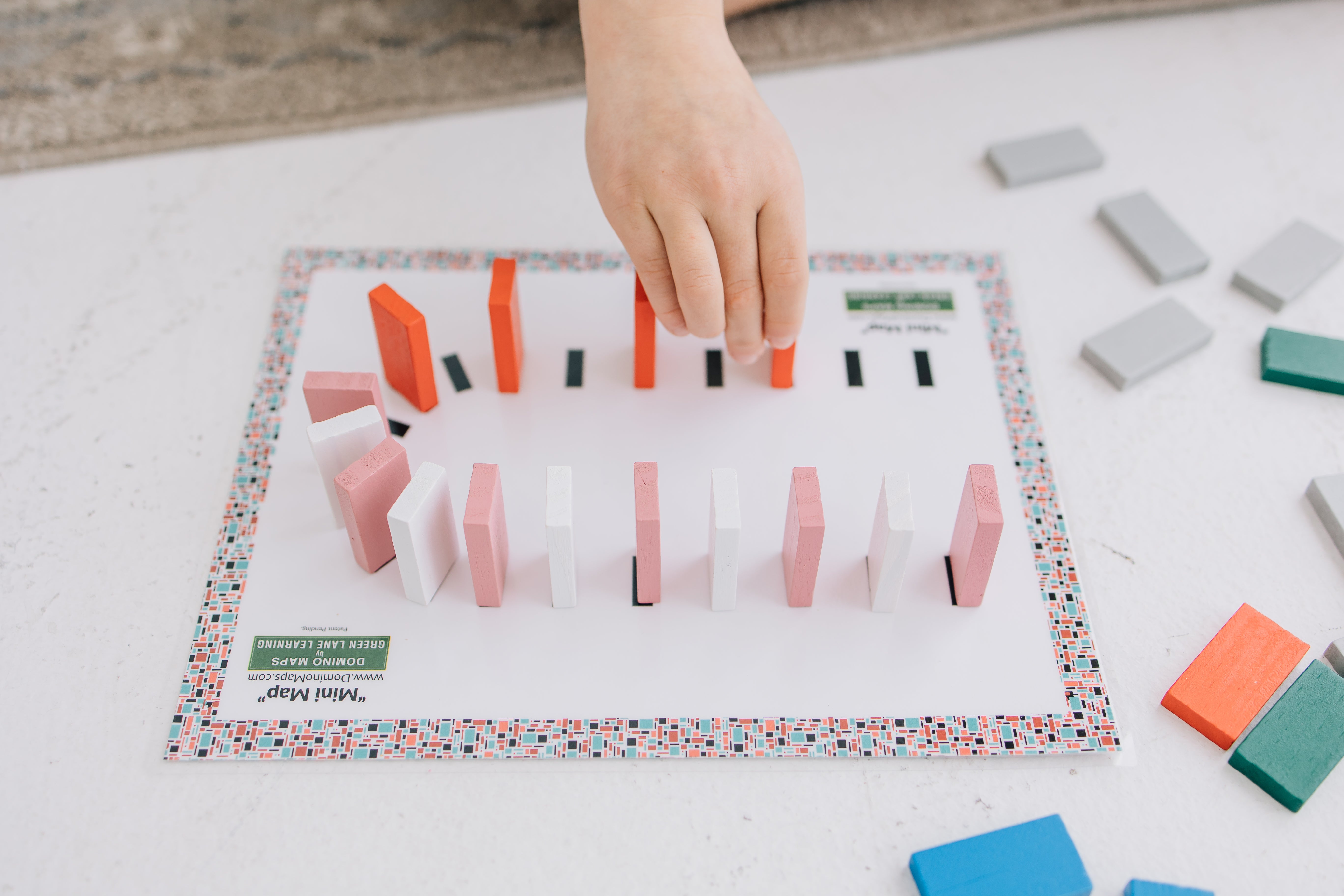 Mini Domino Maps are a Montessori inspired activity for kids. They encourage open ended play and are a wonderful introduction to STEM toys. Mini Domino Maps are used by parents, teachers, and therapists to develop: